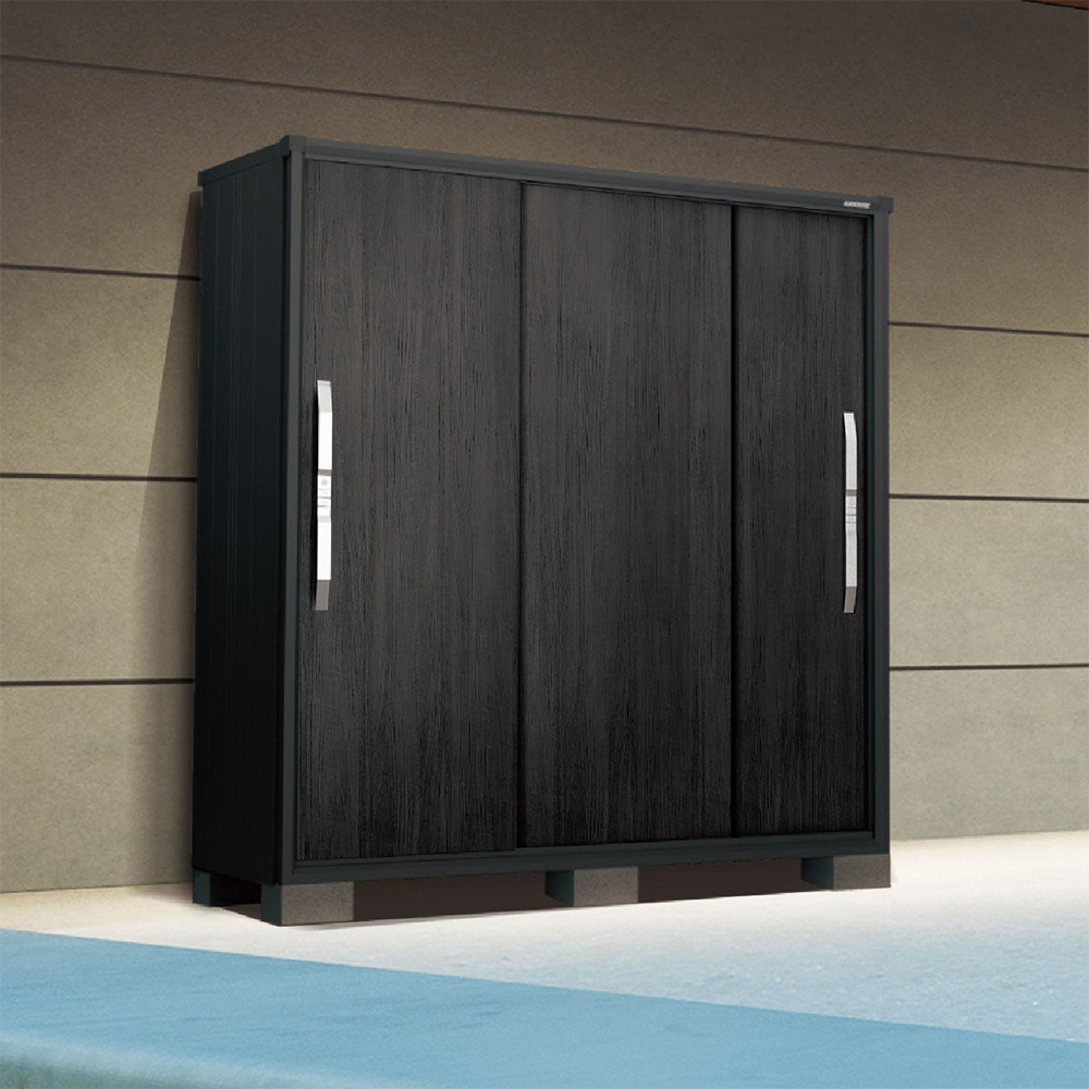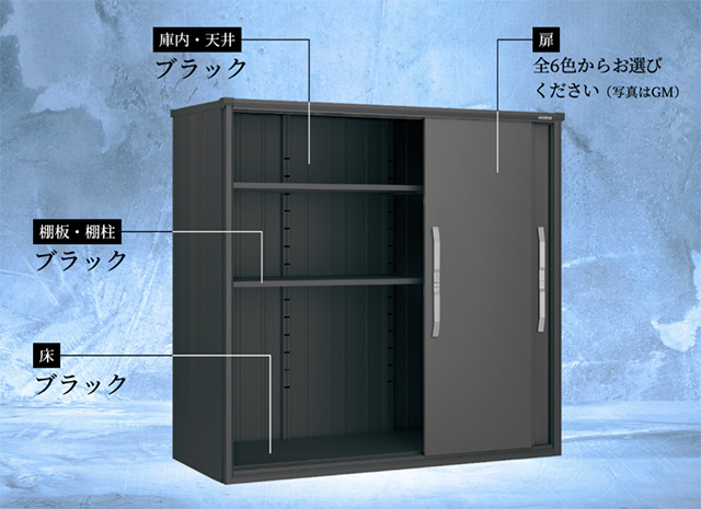 使いやすさで大人気の小型物置エスモから、本体色をブラックにした「ブラックエスモ」が新登場。ヨドコウならではの高級印刷鋼板を使用した木目調扉色「WM(ウッディマロン)」はブラックエスモだけの限定カラーです。