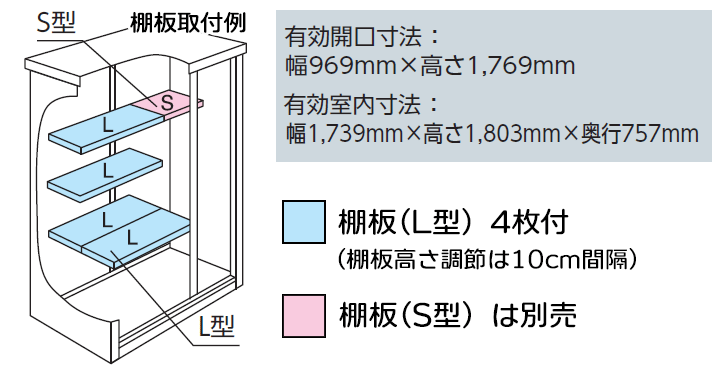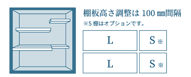 | 扉色/棚板 | PS(プラチナシルバー)/棚板4枚付き |