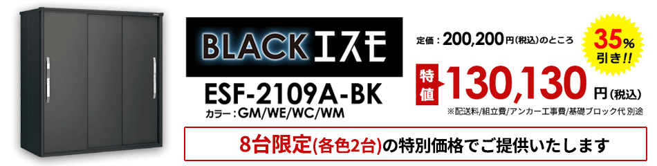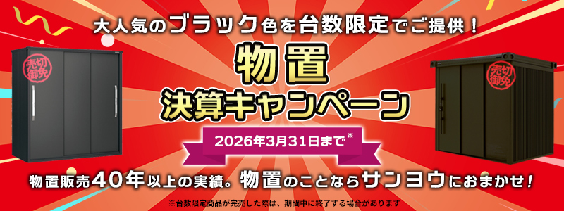 昨今の住宅デザインにマッチする人気のブラック色が登場!人気のヨドコウ物置を台数限定・キャンペーン特価でご提供します。