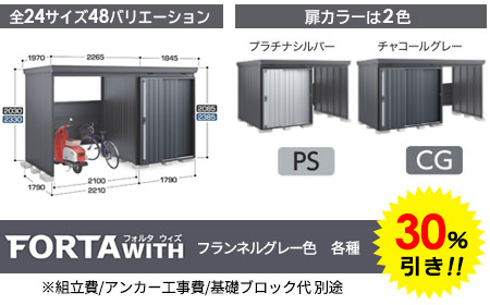 さらに!イナバ物置のフランネルグレー色 各種30%引き!!