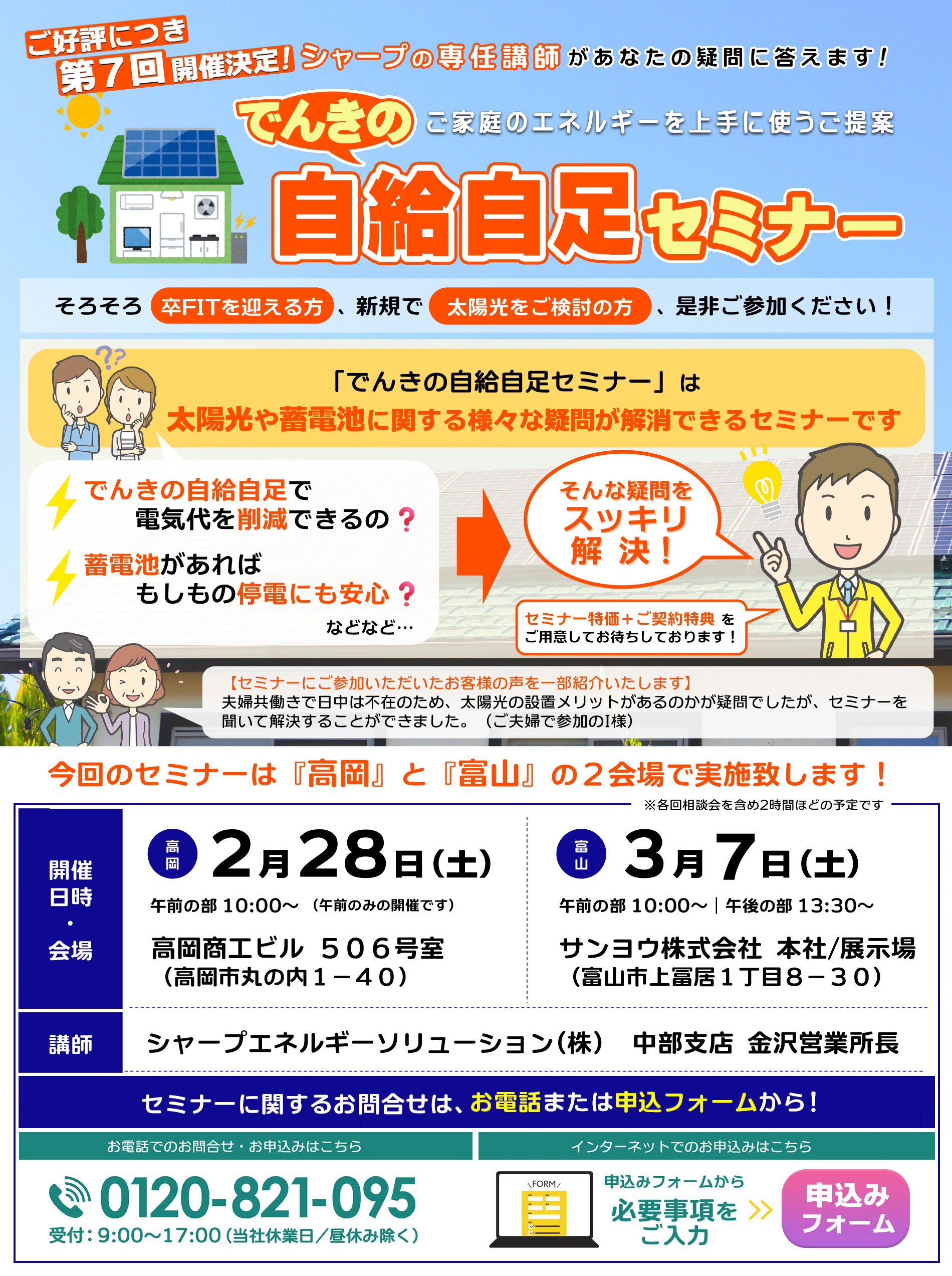 「でんきの自給自足セミナー」は太陽光や蓄電池に関する様々な疑問が解消できるセミナーです。