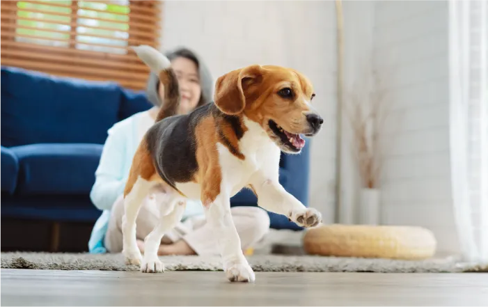 愛犬の「滑り」と「足腰」を守る。フローリングで滑って関節を痛める前に。グリップの効く「ペット対応床」への張替えや、お庭ドッグラン、脱走防止ゲートなど。愛犬家スタッフが提案します。