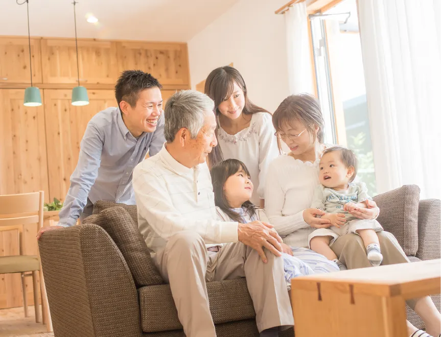 家族はもちろん、お孫さんも遊びに来たくなるような、やさしさに包まれた住まいをご提案します。
