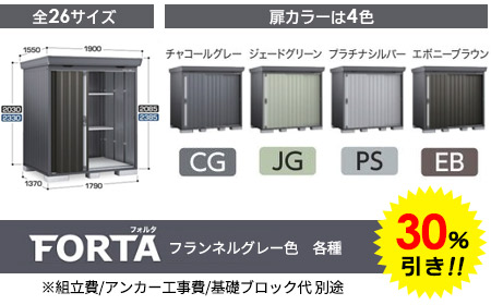 さらに!イナバ物置のフランネルグレー色 各種30%引き!!