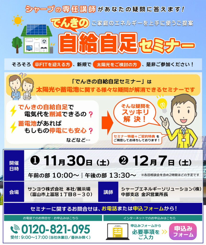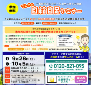 「でんきの自給自足セミナー」は太陽光や蓄電池に関する様々な疑問が解消できるセミナーです。