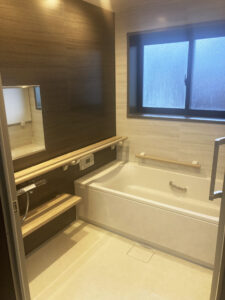 そこで、高断熱仕様の最新ユニットバスへ全面入替を実施。床・壁・天井すべての断熱性能が向上し、冬でも浴室が冷えにくい快適な環境に生まれ変わりました。タイル特有のひんやりとした足元の冷たさも解消され、入浴前後のストレスが大きく軽減されています。